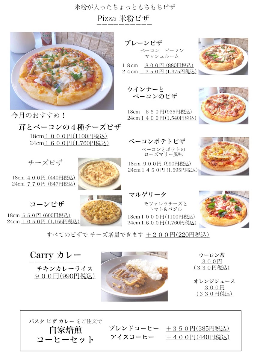 The menu boasts a range of hearty dishes, including various pasta options and gourmet pizzas crafted with 米粉 (rice flour), ensuring a unique texture experience. Customers rave about the classic Margherita pizza and the deliciously simple cheese pizza, both of which maintain an impressive quality even when taken to-go.